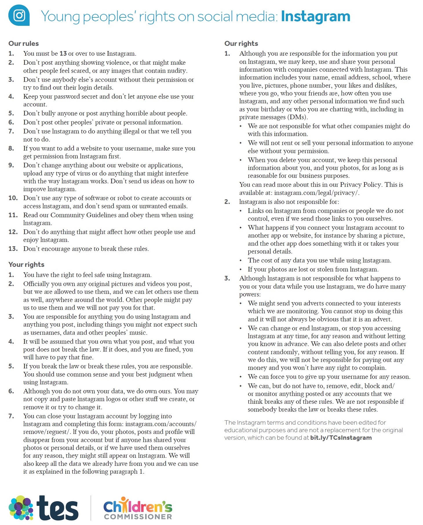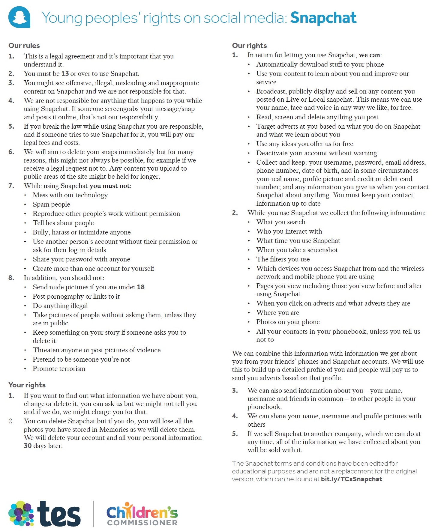 This page provides an overview of Social Media Terms and Conditions for Young People using Instagram, Snapchat, WhatsApp, YouTube and Facebook...